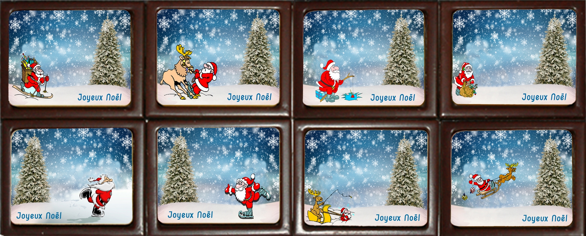 - Commande minimum 8 choco-cards avec vos photos, textes et illustrations.