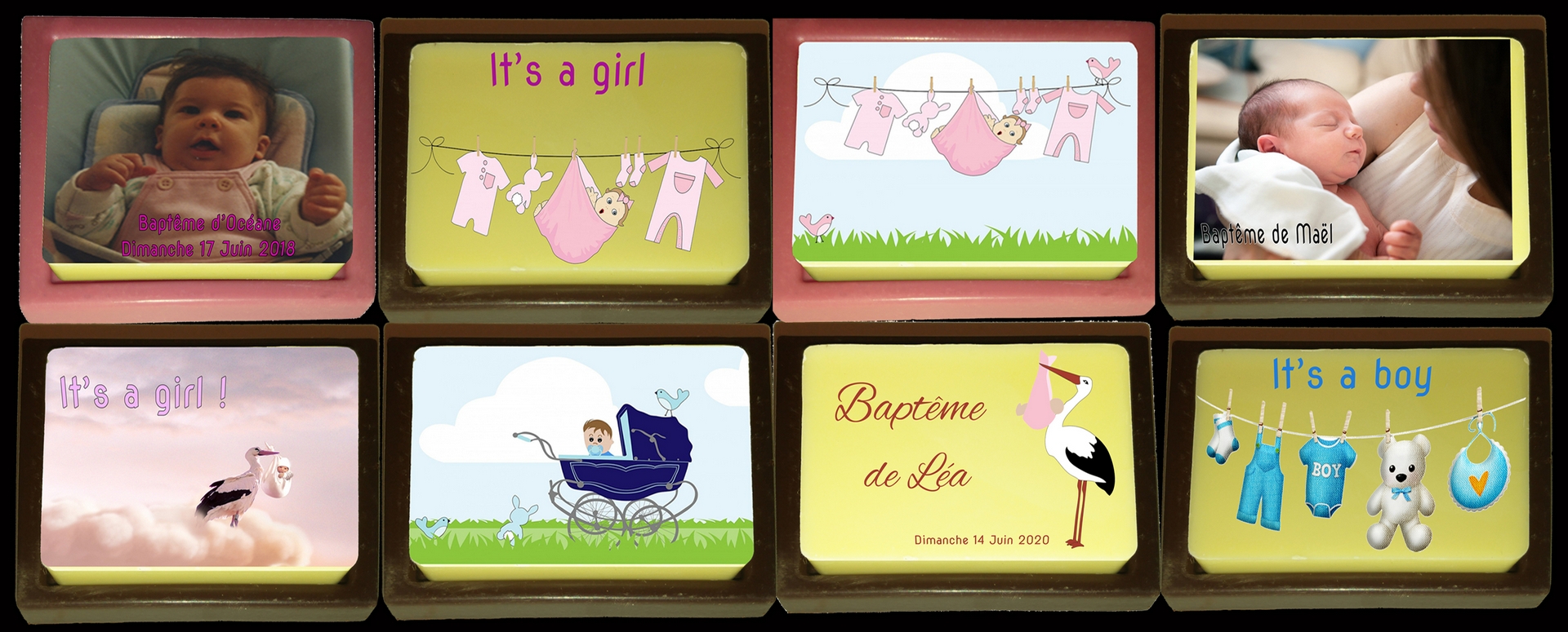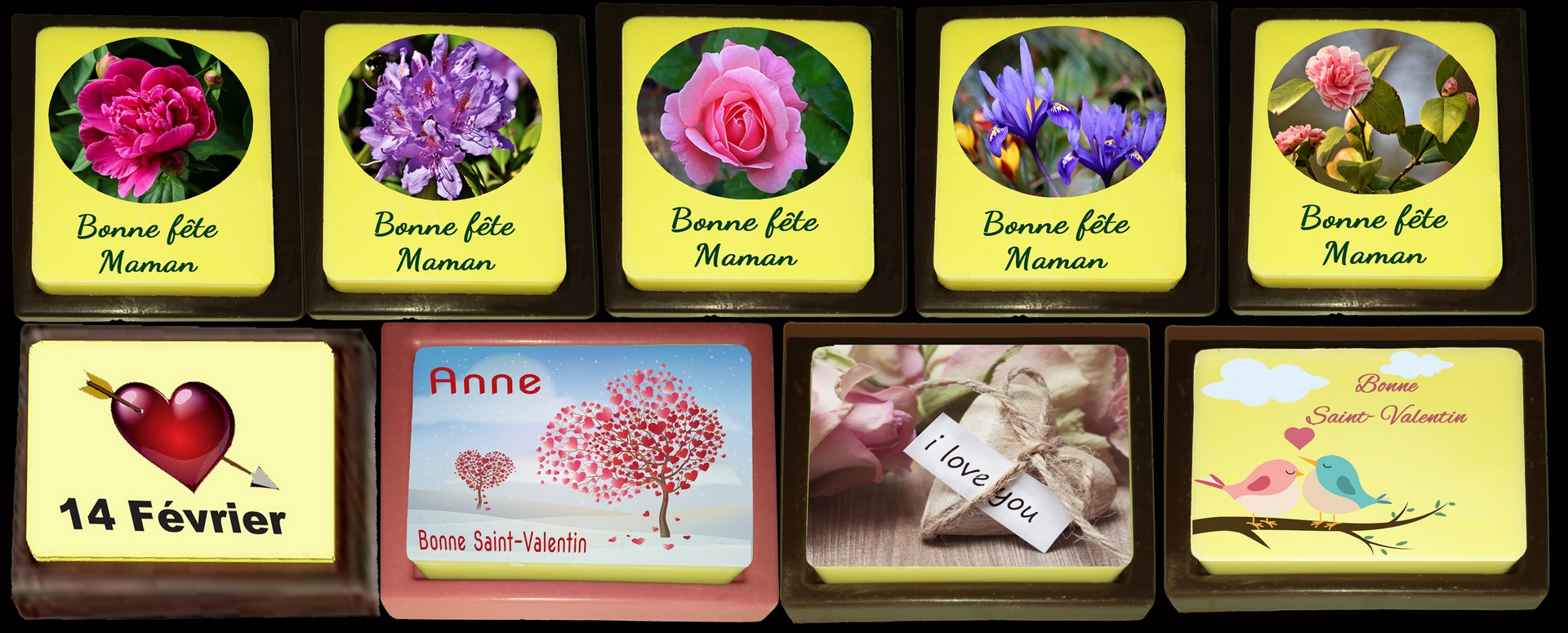 Vos émotions en chocolat avec vos photos et textes personnalisés en couleur.