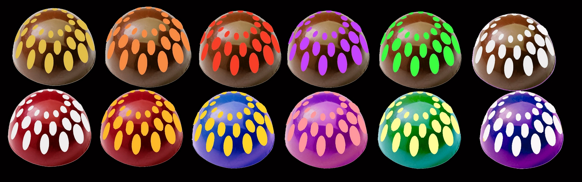 Certains chocolats sont décorés avec des feuilles de transfert colorées au beurre de cacao.