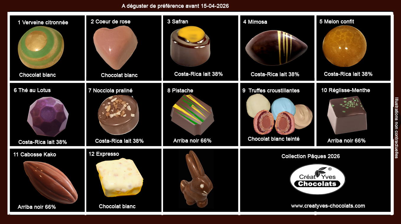 La production de nos chocolats ne se fait que sur pré-commande pour Pâques et Noël.